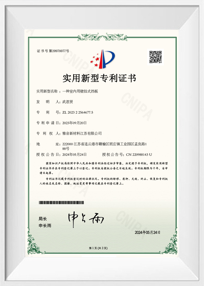 Een patentcertificaat voor modulaire plafonddecoratie